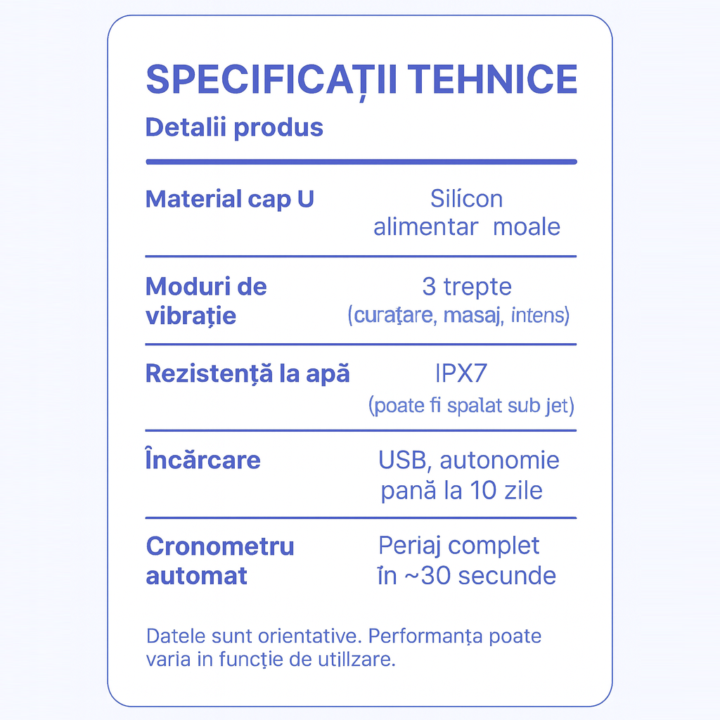 Lumină rece pentru albirea dinților + masaj relaxant pentru gingii, fără afectarea smalțului.